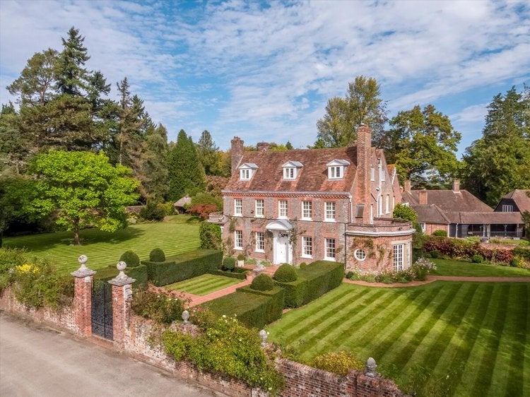 La casa rural de 202.343 metros cuadrados está ubicada en las colinas de Chilterns Hills y tiene una entrada con puertas de hierro forjado. Estas son una réplica de las puertas reales de Sandringham.
