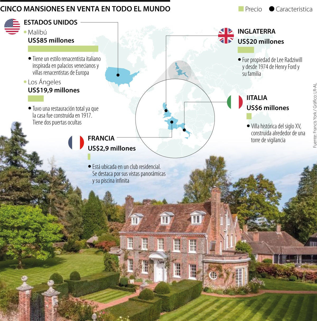 La venta de mansiones en todo el mundo, por lujo o inversión, siempre ha sido un tema de interés, y más aún si tienen una historia detrás. Francis York publicó algunas que están a la venta, las cuales tienen un precio desde los US$19,9 millones.