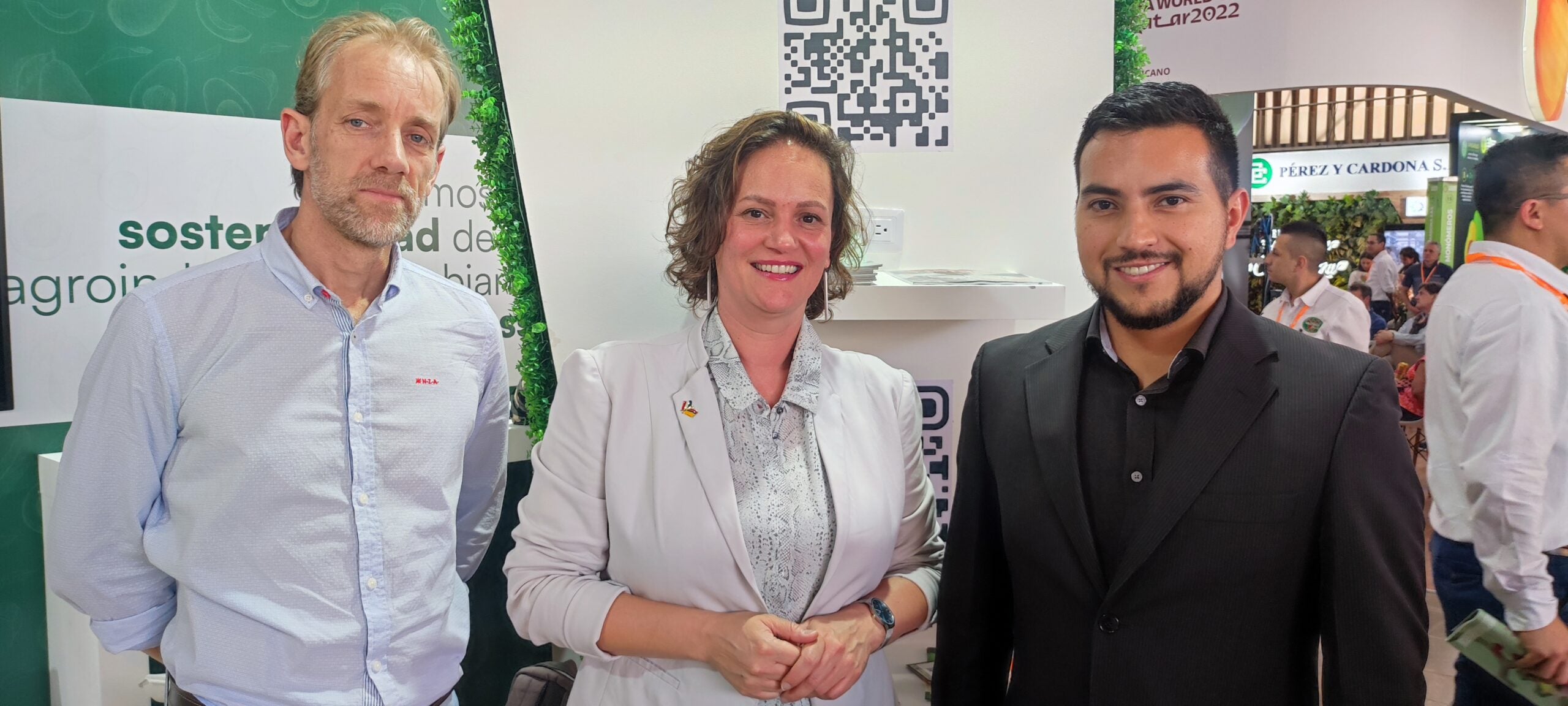Niels van Heeren, fundador de Soil Balance; Leontine Crisson, consejera agro para Colombia; y Andrés Santana, asesor de Países Bajos