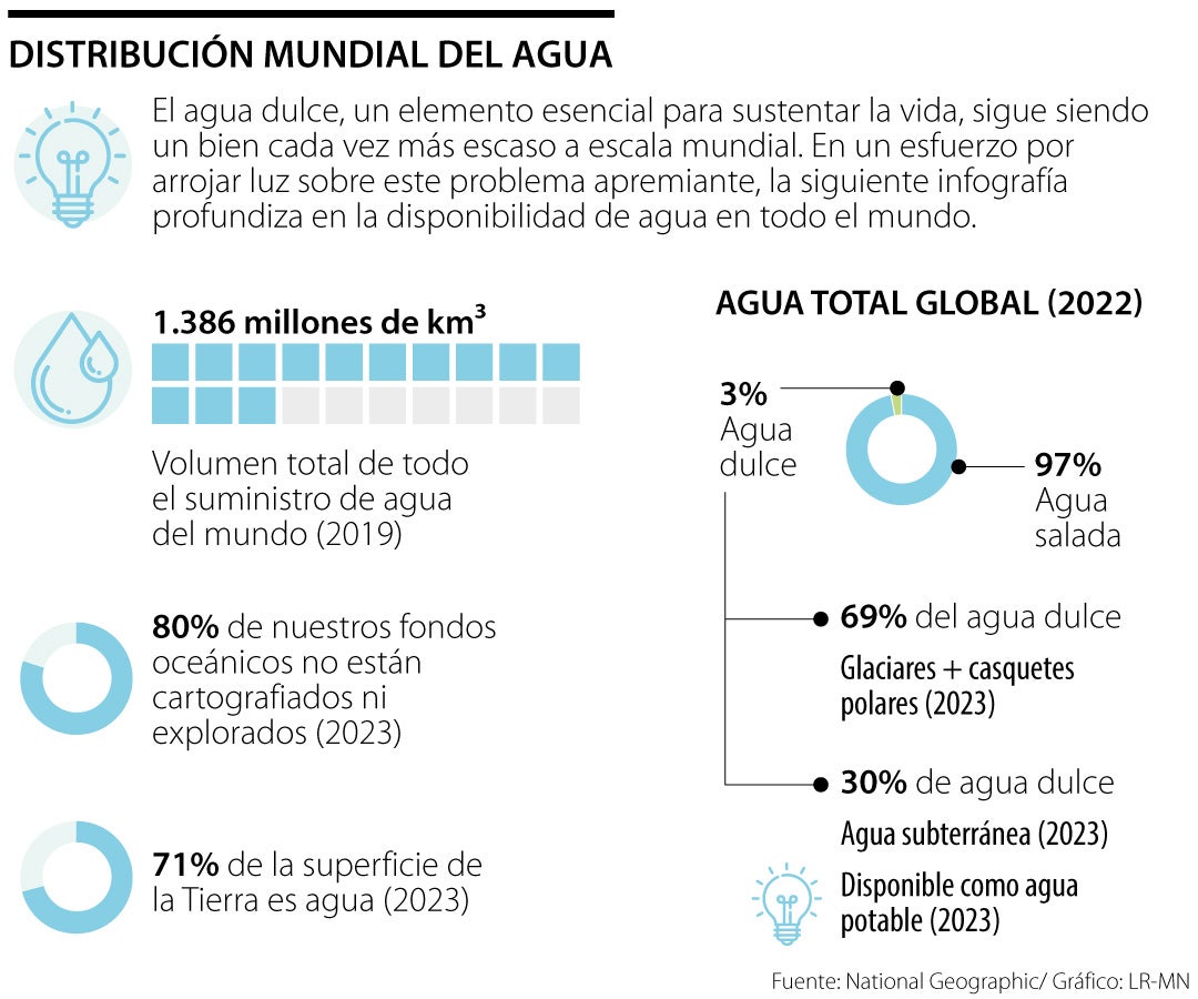 Solo hay un 1% del agua dulce a nivel mundial como suministro "accesible", proveniente de la lluvia y depósitos como ríos y lagos