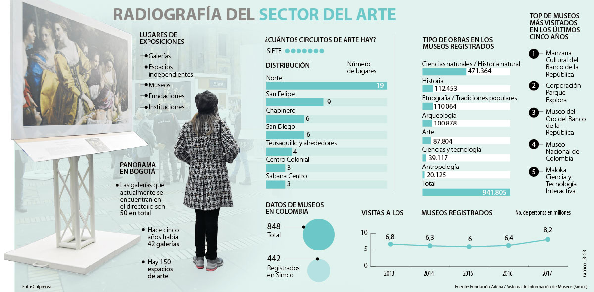 Otro de los puntos que demuestra que el arte está viviendo un momento positivo es el aumento de las visitas a los museos en los últimos cinco años. Según el Sistema de Información de Museos (Simco), en 2017 los museos registrados en la plataforma tuvieron alrededor de 8,2 millones de visitantes, mientras que en 2013 contaron con 6,8 millones de asistentes.