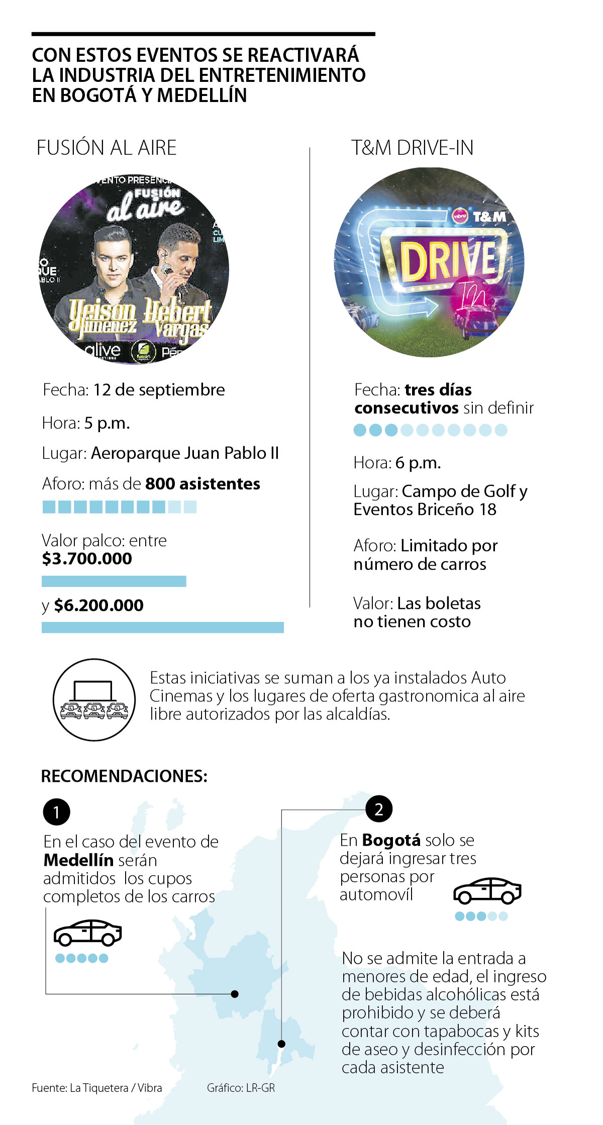 A Medellín llega luego de cinco meses de medidas restrictivas, el primer concierto en vivo con asistencia de público físico, donde los asistentes podrán estar fuera de sus vehículos. El evento denominado ‘Fusión al Aire’ se llevará a cabo el sábado 12 de septiembre en el Aeroparque Juan Pablo II, desde las 5:00 p.m. Este pretende reunir a más de 800 personas alrededor del escenario, con las más reconocidas canciones del artista popular Yeison Jiménez y del reconocido cantante vallenato Hebert Vargas.