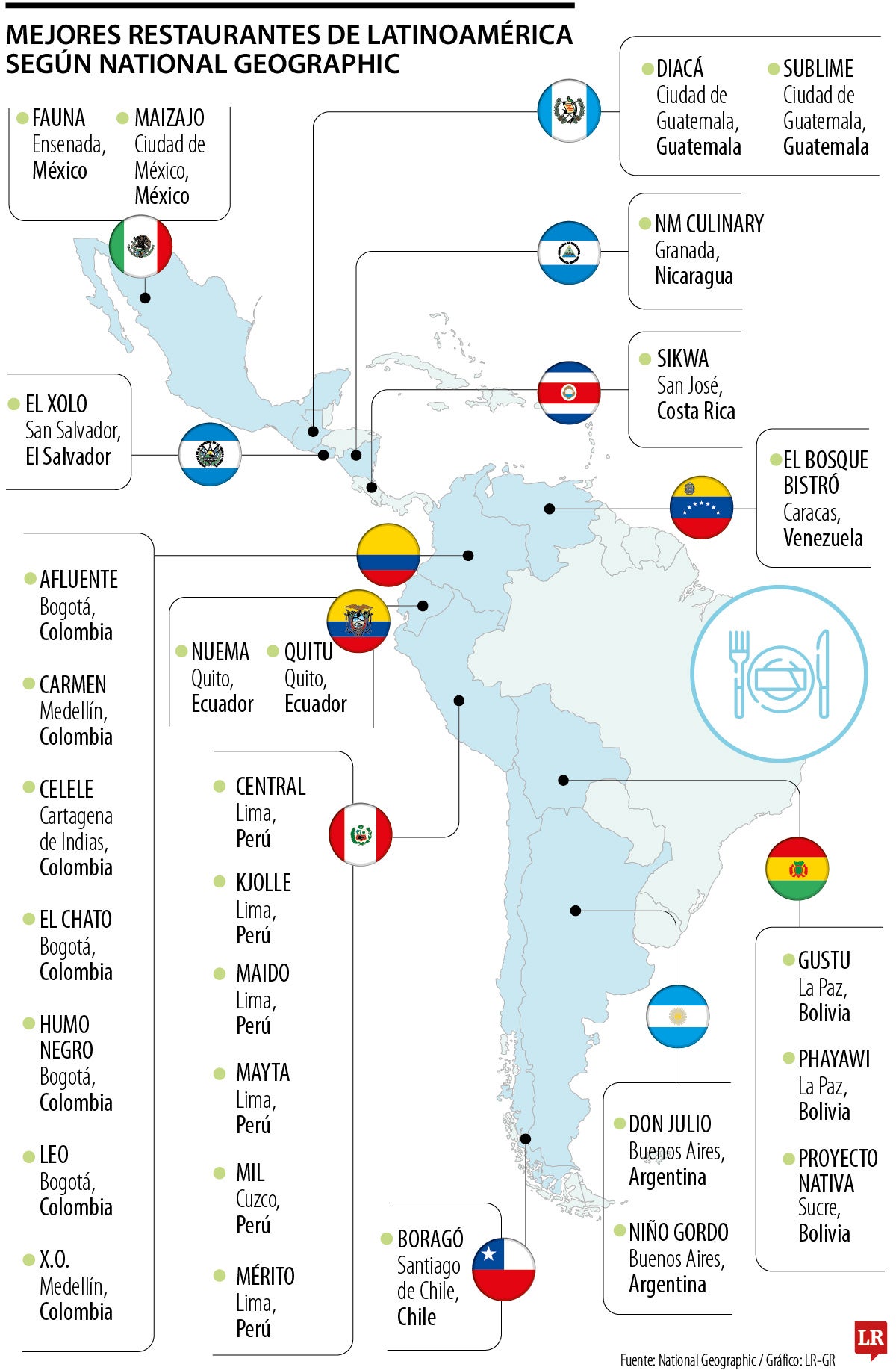 La cocina es una expresión cultural de cada territorio, por eso en cada país hay restaurantes que se destacan por contar de sus orígenes, de sus sabores y especies. National Geographic realizó un listado los mejores restaurantes de Latinoamérica para la edición 2024. Aquí le presentamos algunos de los que figuran en esta lista.