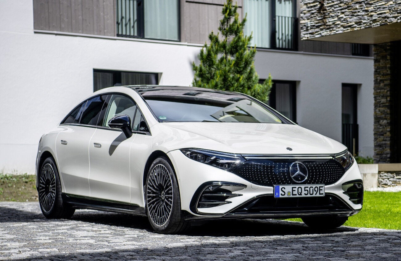 La superberlina eléctrica de Mercedes-Benz es el coche 'a pilas' con mayor autonomía del mercado. Su batería de 107,8 kWh le permite recorrer hasta 740 kilómetros con una sola carga, pero sólo la versión de menor potencia (330 CV) y tracción trasera, denominada EQS 450+. Su precio arranca en 118.062 euros.