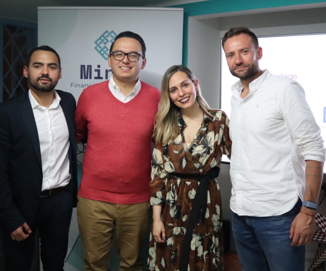 Jorge López, asociado de Gómez-Pinzón Abogados; Catherine Baena, de la IAPP; Erick Rincón, presidente Colombia Fintech y Domagoj Rozic, CEO de Minka.