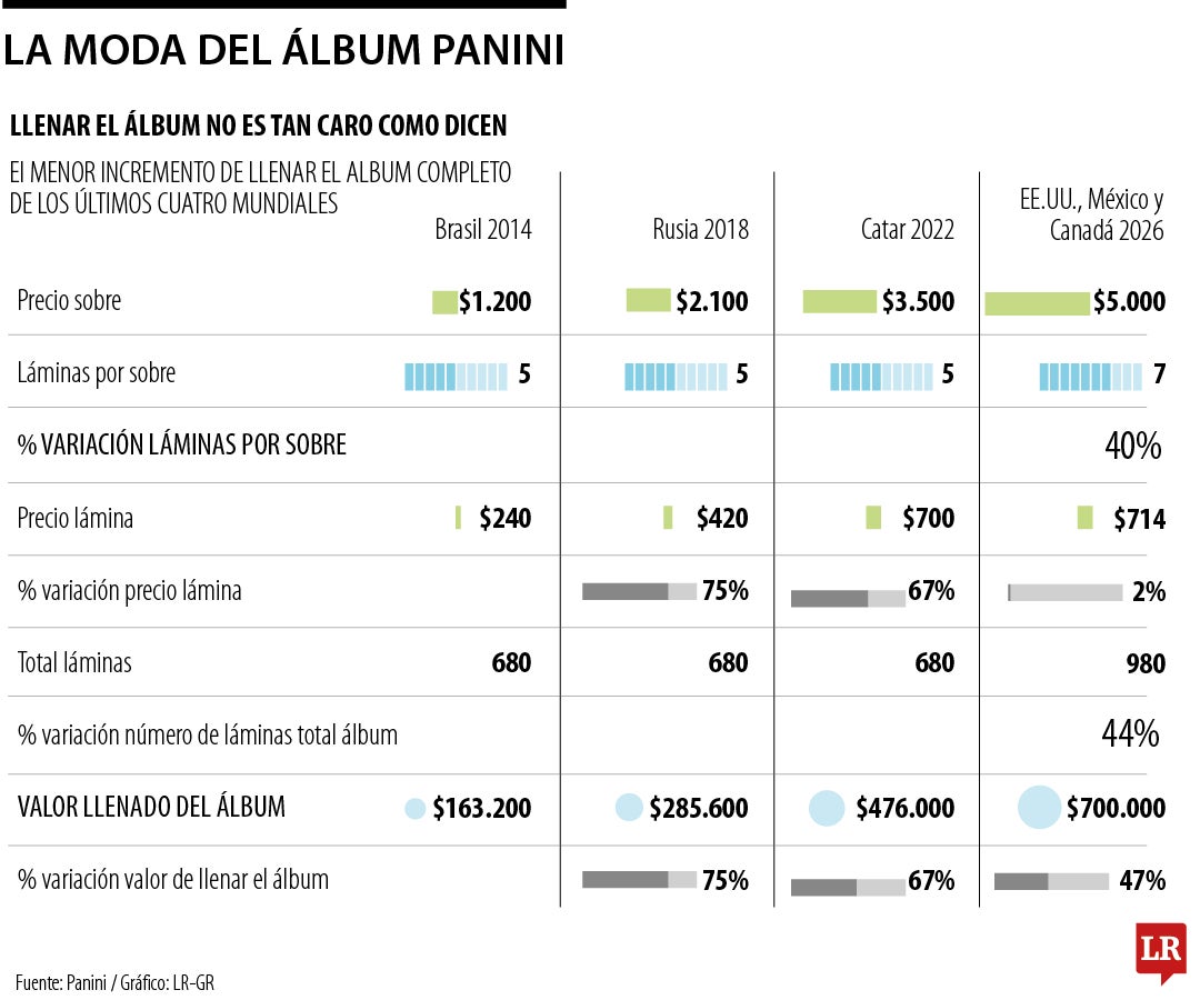 Aunque está la percepción de que es caro completar el álbum del Mundial, datos indican que el incremento en el valor por lámina para esta edición es de apenas 2%