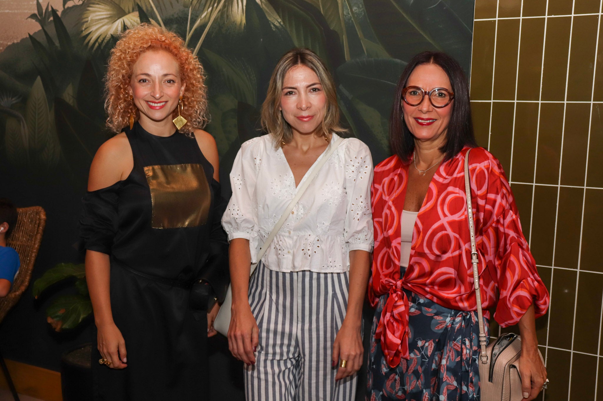 Johanna Rojas, fundadora de Ocre y Arco; Taliana Vargas, actriz y modelos; y María Fernanda Valencia, diseñadora de JDD Swimwear.