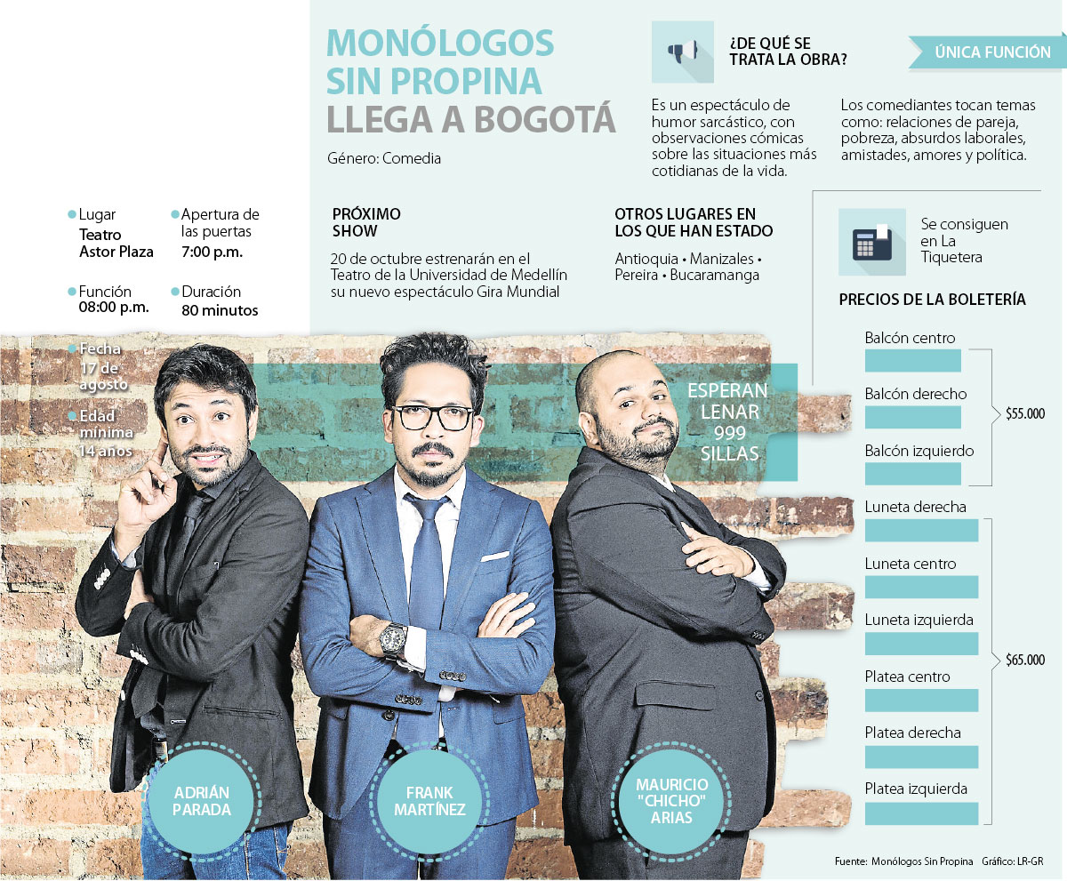 Monólogos Sin Propina “nació del deseo de pagar las cuentas sin tener que madrugar. Así fue como hace varios años dos amigos, inicialmente, se dieron a la tarea de lograr ese objetivo a través de la comedia”, contó Arbeláez.