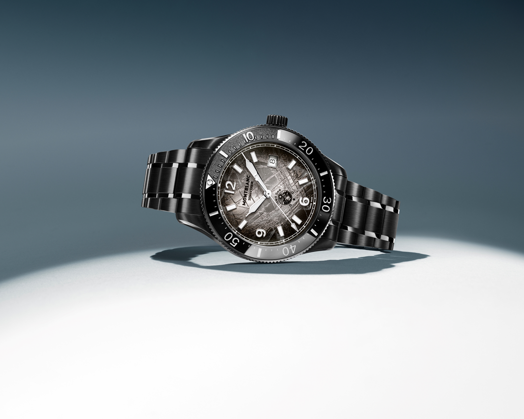 Montblanc explora las tonalidades oscuras del acero tratado e incorpora un acabado gris sfumato sobre la esfera con motivo de glaciar.