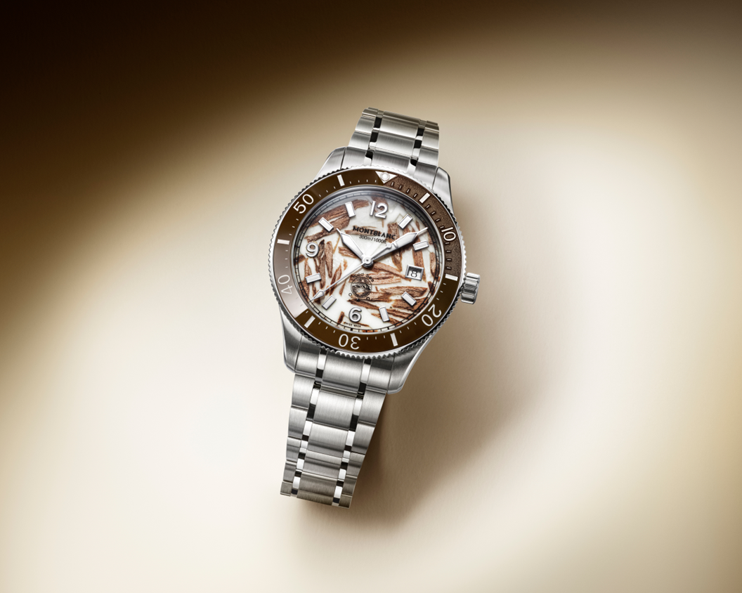 El nuevo reloj de edición limitada de Montblanc, una incorporación a la colección Iced Sea, encarna los atardeceres de verano con tonalidades cálidas.