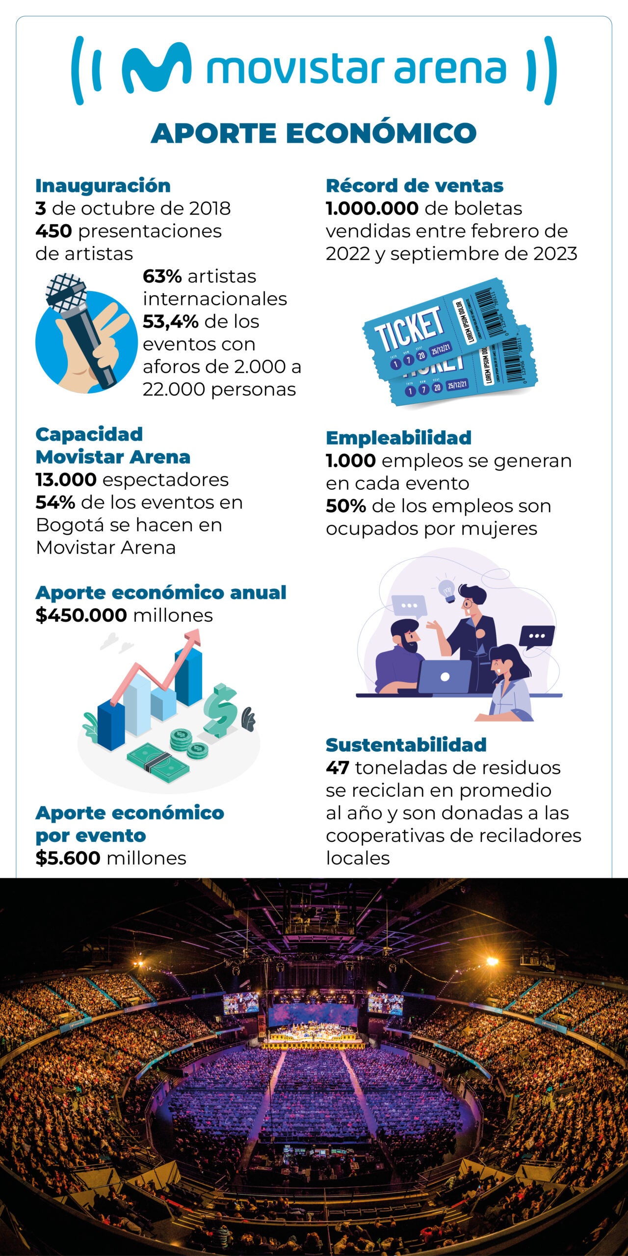 La celebración del quinquenio del Movistar Arena se realizará el 11 de octubre, con un evento privado en el que se reconocerá la labor de miles de personas que han hecho posible que ese recinto se consolidara como el escenario multipropósito más importante de Colombia y se haya metido en el corazón de los bogotanos.