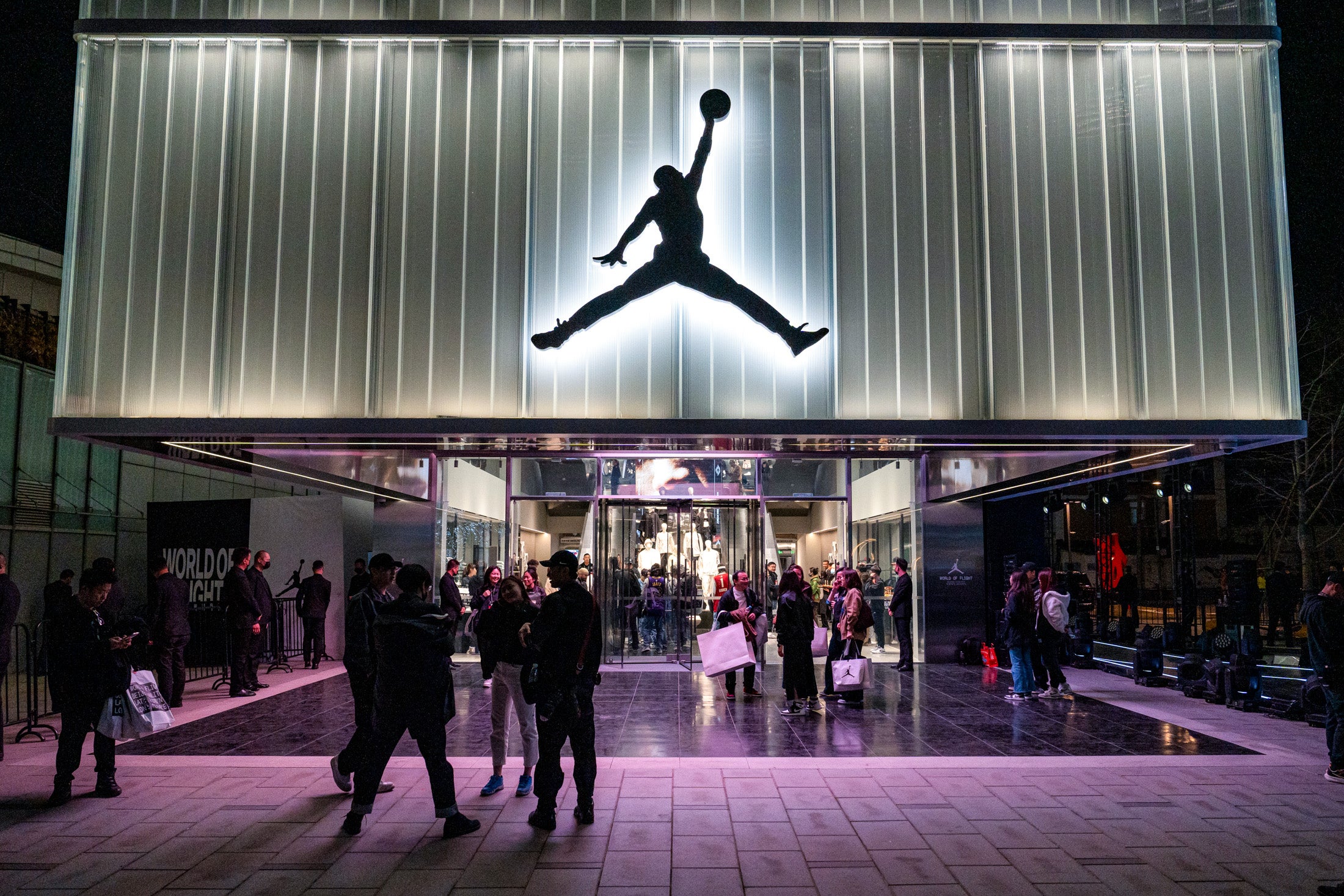 Como testimonio de lo urgentemente que Nike necesita revitalizar su negocio en China, y de su convicción de que Jordania es la manera de hacerlo, la compañía eligió Beijing para su cuarto puesto global del World of Flight específico para Jordania, muy por delante del Debut en Estados Unidos previsto para Filadelfia. La noche antes de que la tienda abriera al público en marzo, las estrellas del baloncesto local asistieron a una recepción VIP. El rapero chino Asen actuó en un escenario al aire libre ante una multitud estridente.