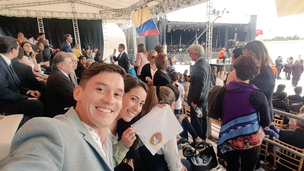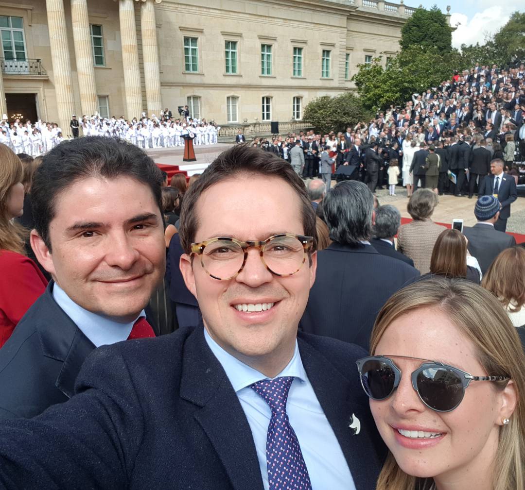 El viceministro general TIC, Juan Sebastián Rozo, junto a su esposa y el exministro, Luis Felipe Henao