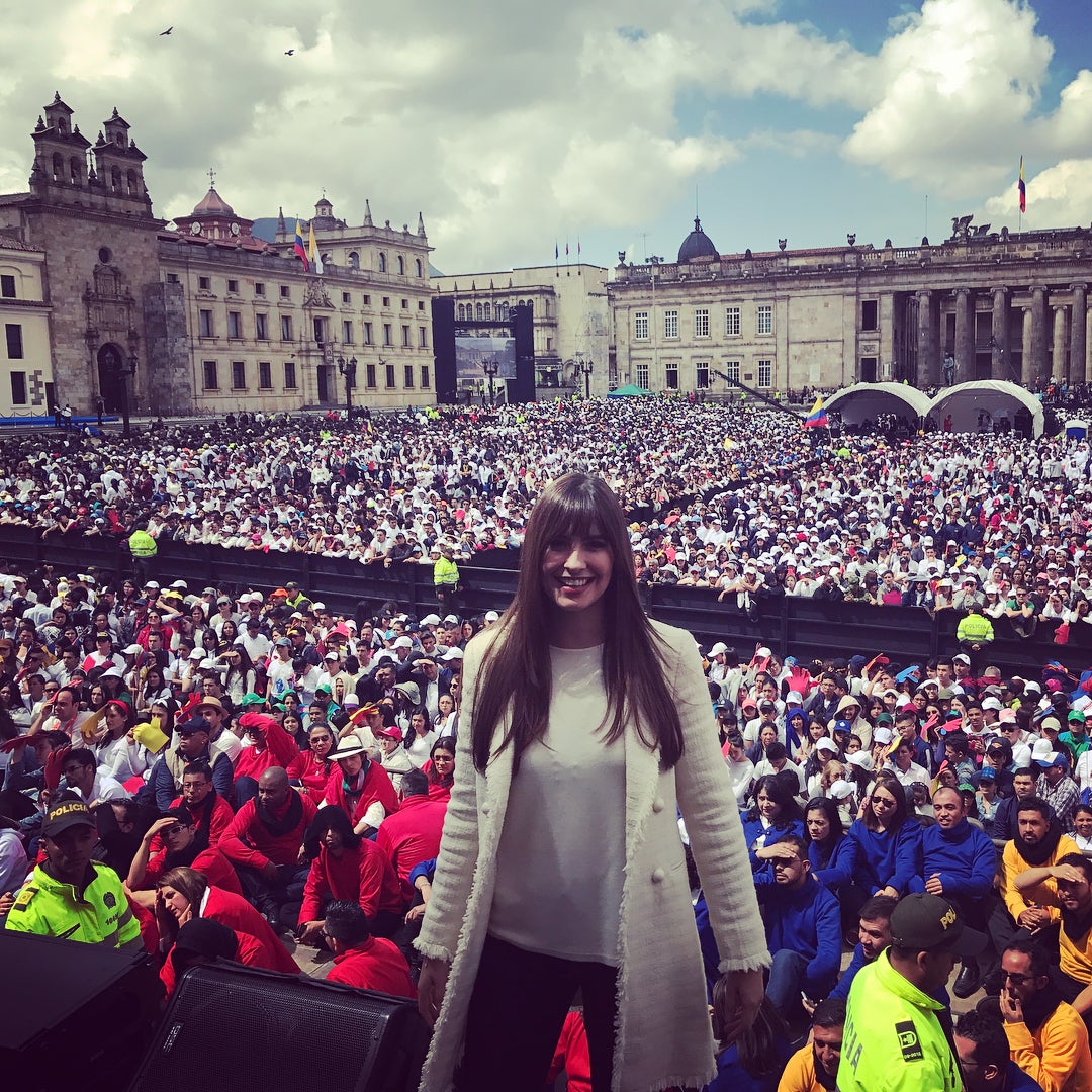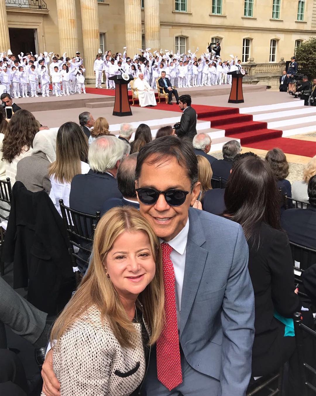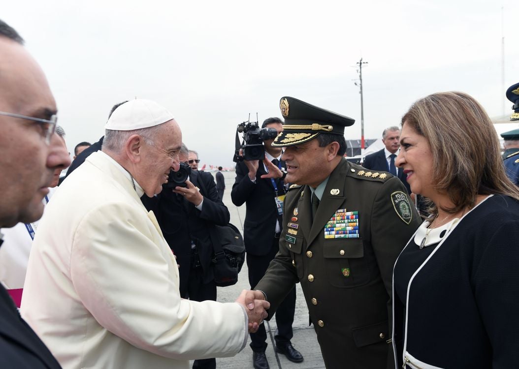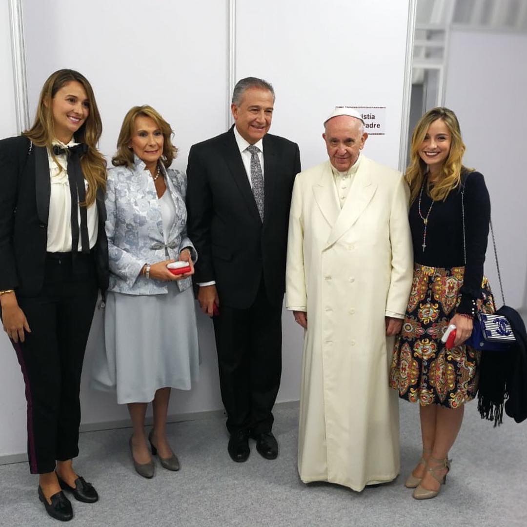El vicepresidente Óscar Naranjo, sus hijas Marina y María Claudia, y su esposa, Claudia Luque, acompañaron a Jorge Bergoglio.