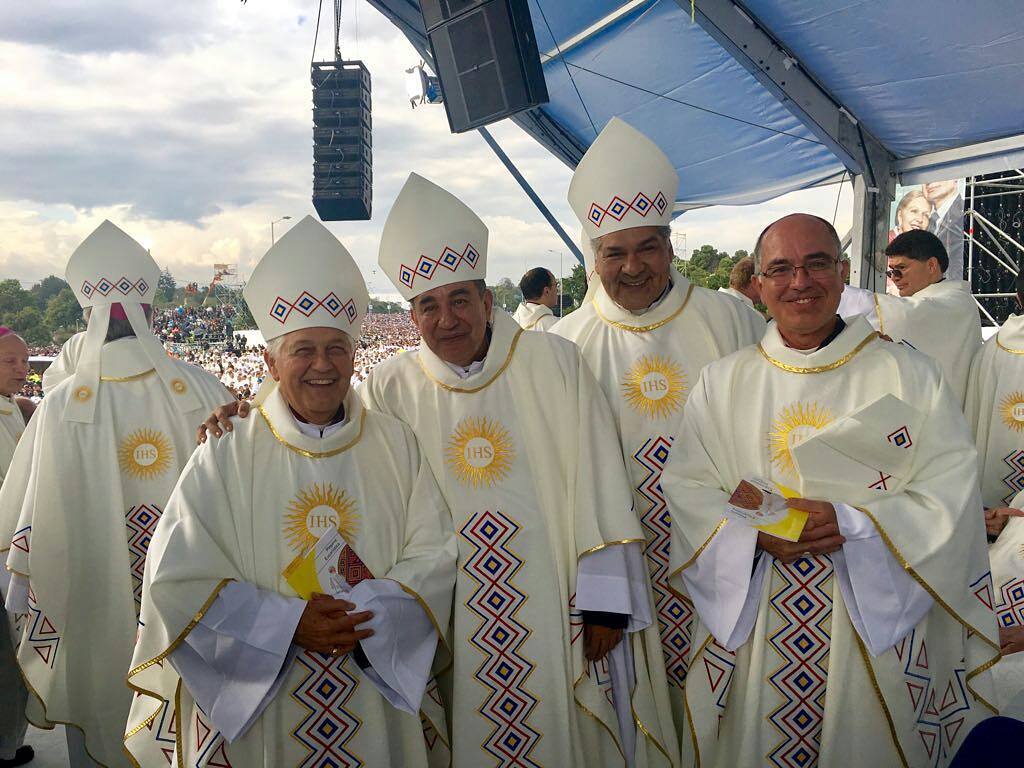 El presidente de la Conferencia Episcopal Panameña, Monseñor José Domingo Ulloa y miembros de la institución asistieron a la visita papal en Colombia.