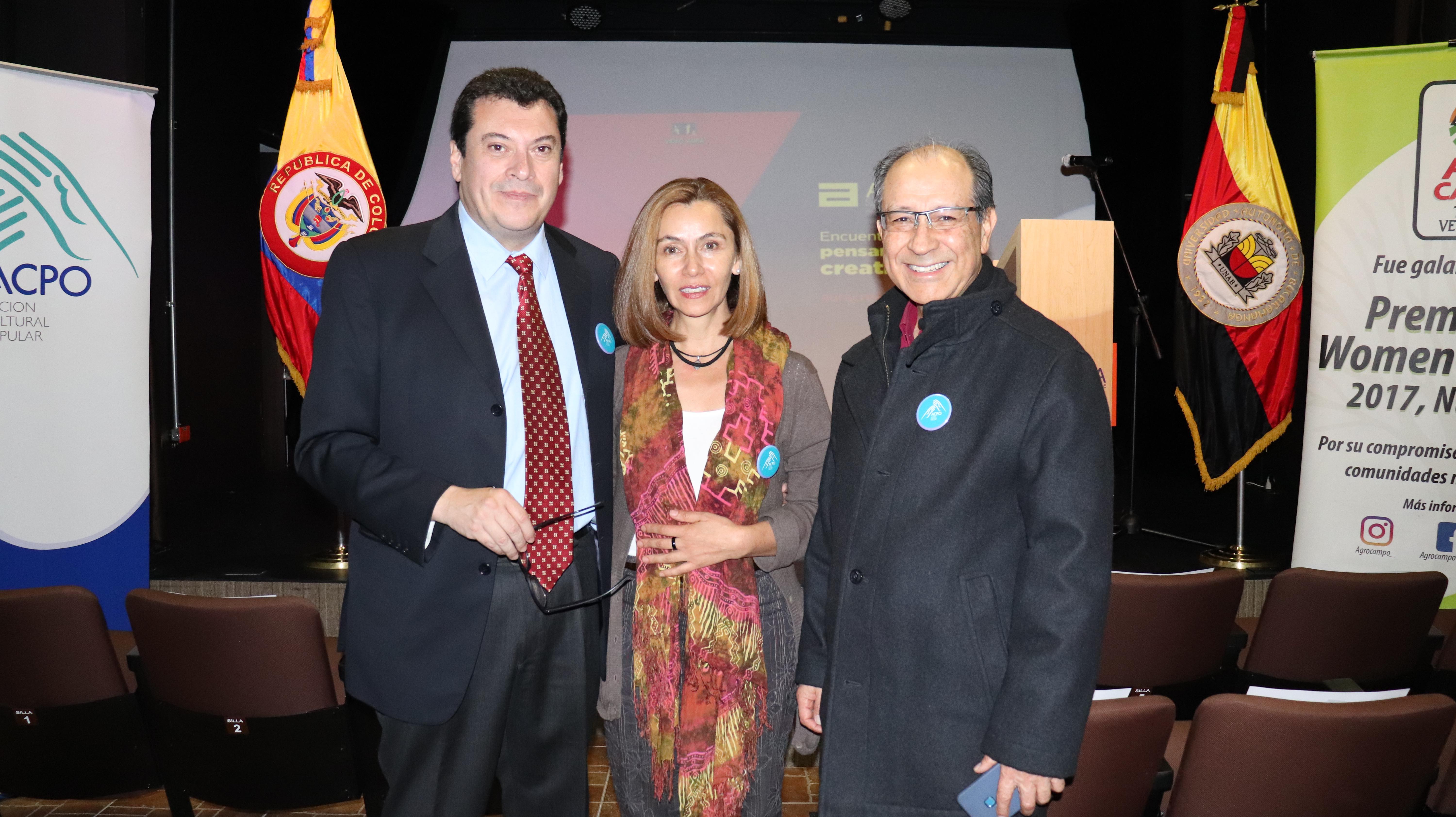 Nicolás Montañez, Diana Rodríguez y Bernardo Nieto estuvieron entre los invitados a la exhibición en la que destacan los derechos de los campesinos promulgados por las Naciones Unidas.