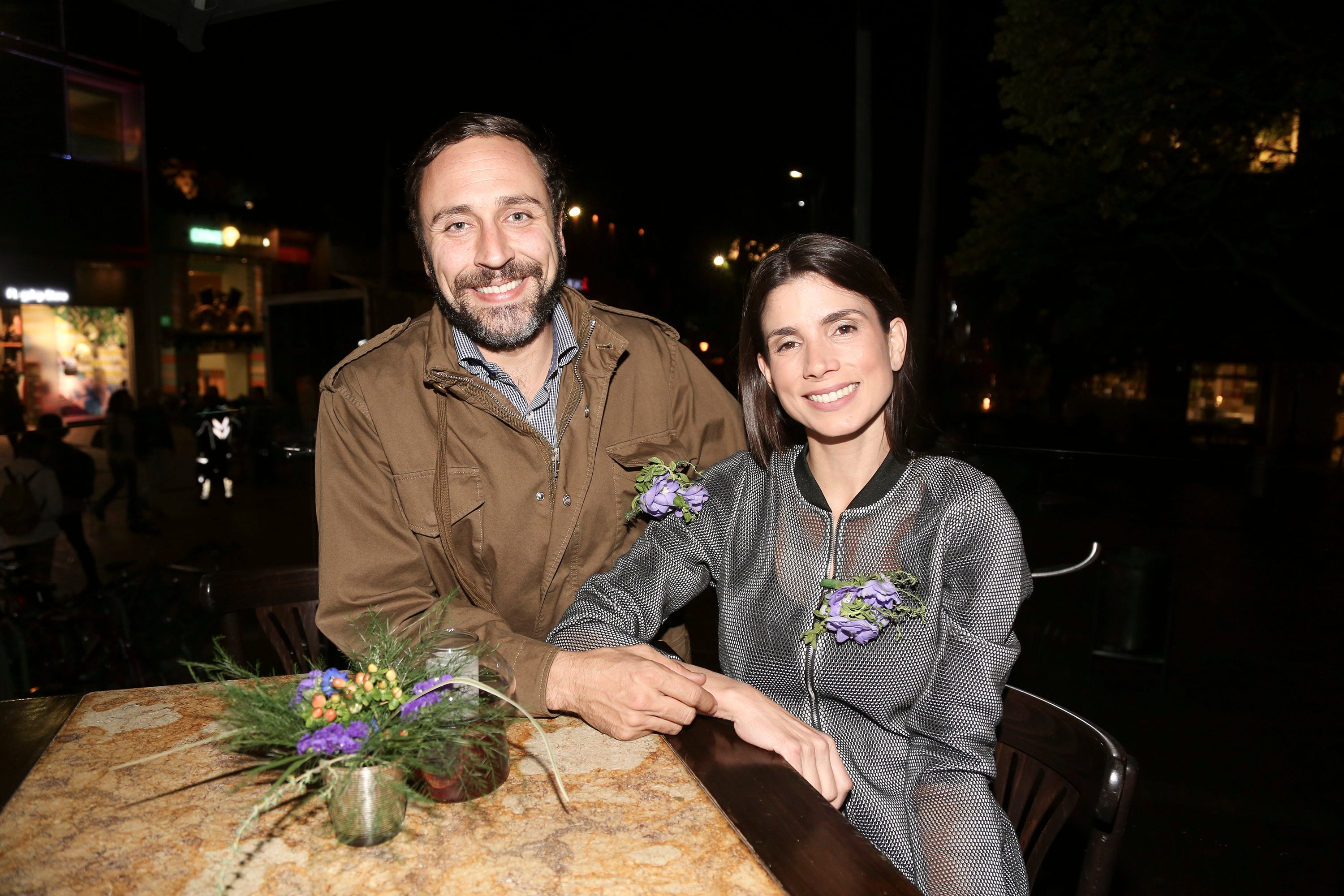 El diseñador colombiano de ropa masculina, Ricardo Pava, en compañía de Ingrid Wobst en la presentación de la nueva carta de Zona K.