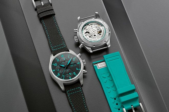 El usuario del reloj puede intercambiarlas fácilmente en casa gracias al sistema integrado EasX-Change, consistente en un pequeño pulsador situado en el fondo de la correa, el cual la libera de la caja en apenas unos segundos. El reloj de Aviador Cronógrafo 41 Edición Mercedes-AMG Petronas Formula OneTM Team, que es el larguísimo nombre oficial de esta edición, cuesta 8.650 euros (UA$8.478) y solo se vende en la boutique online de la firma.