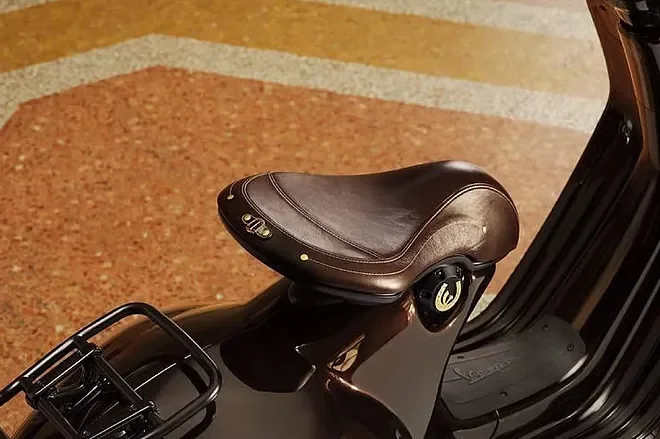Se trata de una edición limitada donde la motocicleta de Piaggio ve modificadas sus curvas para equiparar su montura a la elegancia y majestuosidad del caballo. Una versión exclusiva cuya carrocería de acero se distingue por el color castaño, que recuerda al pelaje equino, salpicada de acabados en mate y brillo, que combinan con elegantes detalles dorados, como el monograma V impreso en el centro de una herradura situada bajo el asiento.