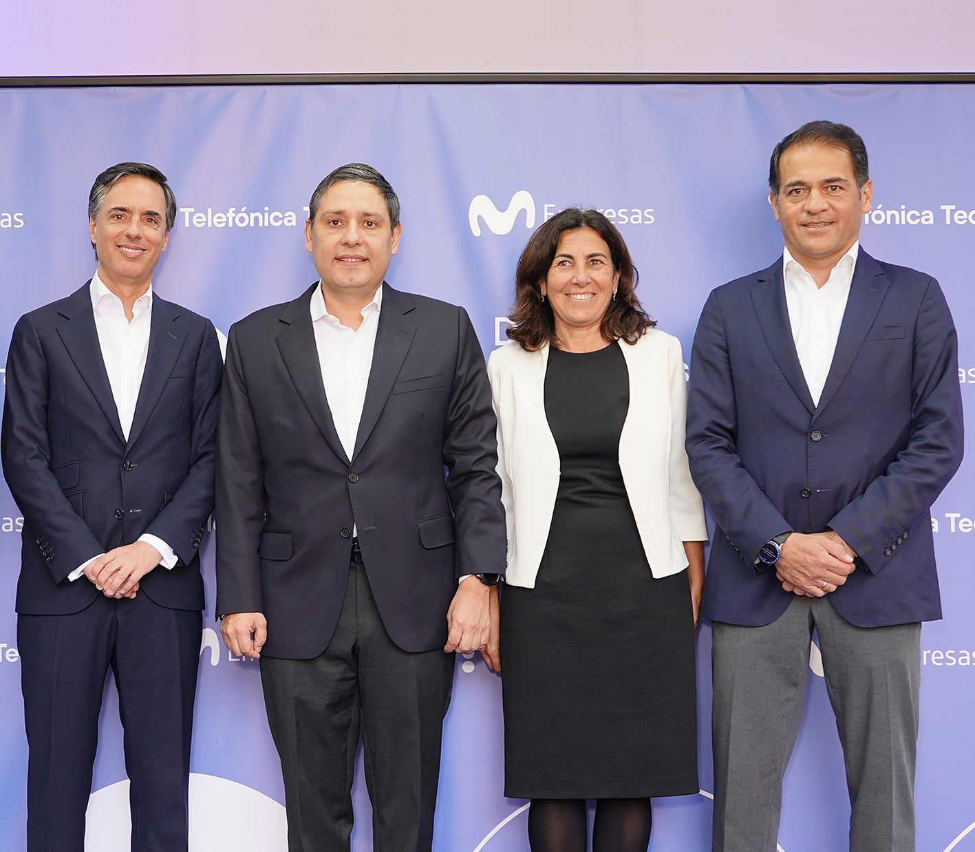 Foto: Alfonso Gómez, CEO Telefónica Hispam; Óscar Mauricio Lizcano, Ministro TIC; Jesús Almazor, CEO Telefónica Tech Cyber Security, y Fabián Hernández, CEO Telefónica Movistar Colombia.