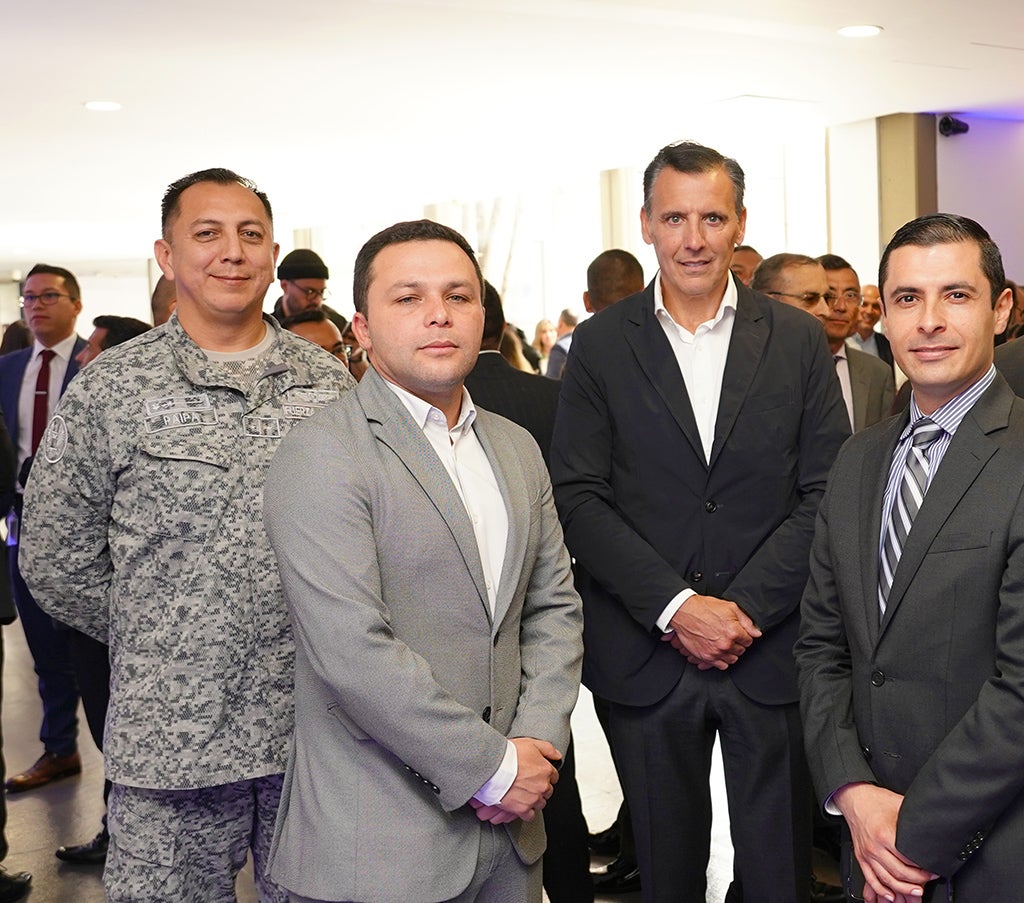 Foto: Coronel Iván Darío Paipa, subdirector Jefatura de Inteligencia FAC; Mayor John Guevara Pulido, Jefe grupo Ciberinteligencia Policial; José Cerdán, CEO Telefónica Tech, y Adrián Vega, Jefe Centro cibernético Policial.