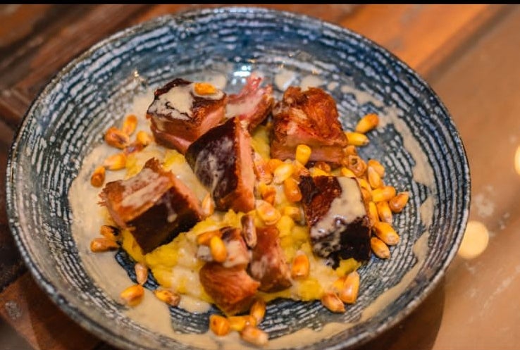 La panceta es uno de los favoritos de los visitantes. Está compuesto por 200 gramos de panceta de cerdo, ahumada por ocho horas, servida sobre una crema de puré de papa criolla y arracacha, bañada en salsa de queso azul y maíz. Tiene un precio de $52.000.