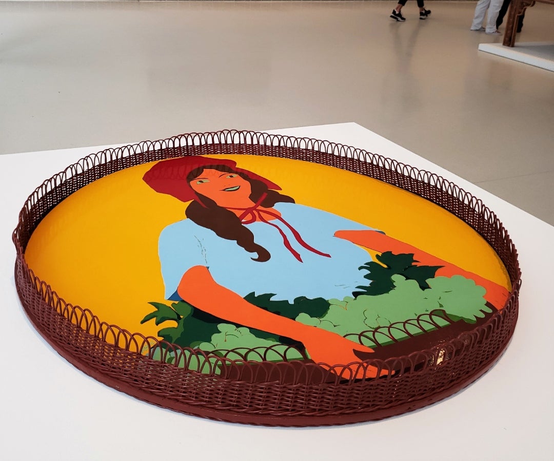 Para Gutiérrez, esta pieza es clave porque refleja una búsqueda formal y simbólica de la artista. En ella, González toma una imagen proveniente del arte universal y la traslada a un soporte cotidiano, como una bandeja, para cuestionar el gusto, la cultura material y la forma en que los colombianos se relacionan con las grandes imágenes del arte.