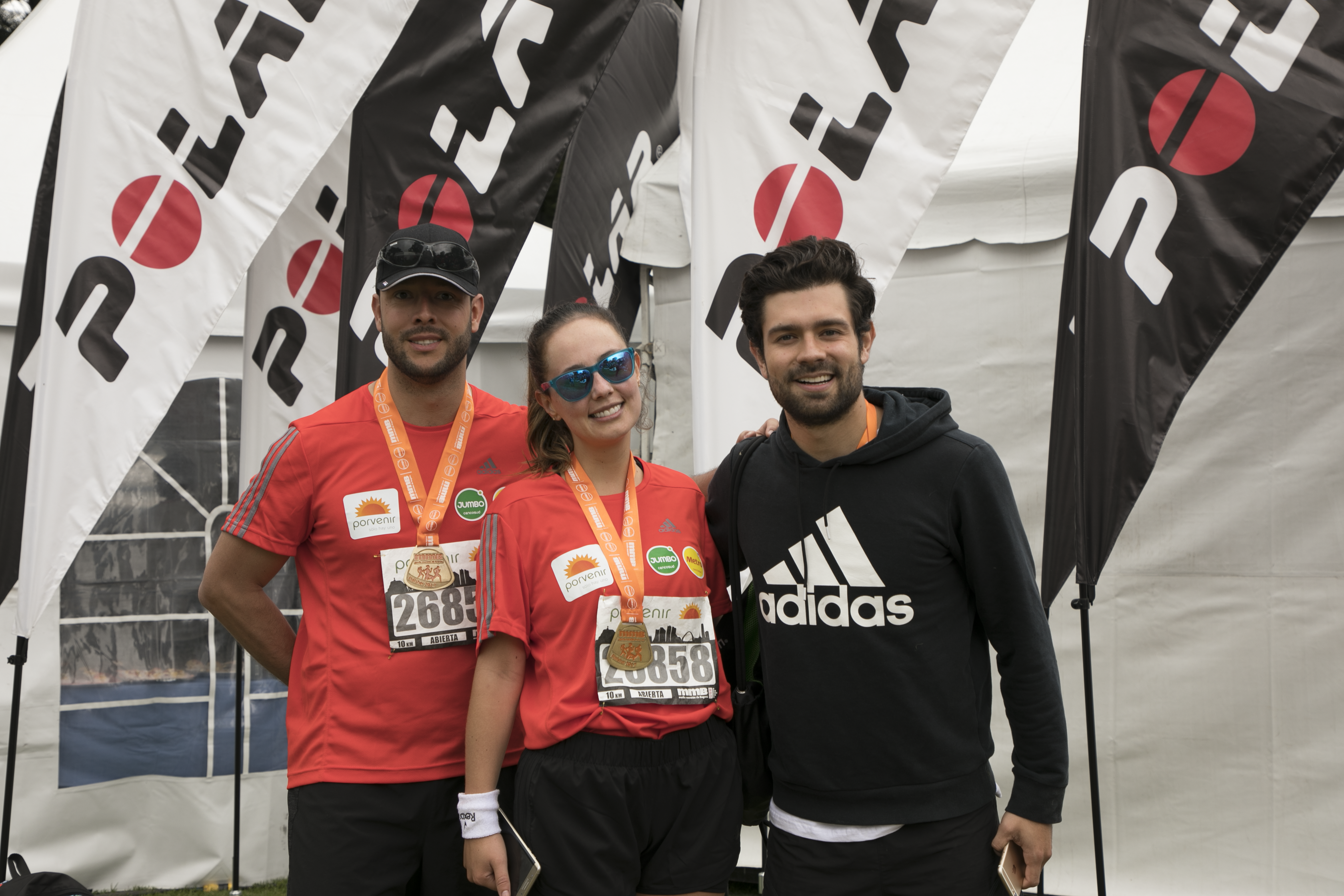 Foto: Santiago Pardo Ferrer posa a la llegada de la meta de la MMB con Milena López y Juan Diego Vanegas.