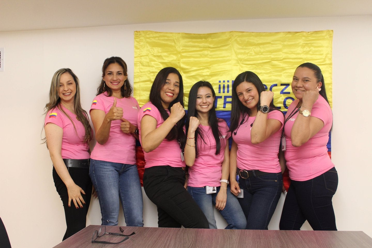Angela Londoño, Martha Zambrano, Gloria Cerchar, Katherine Ortiz, Angie Moreno y Andrea Vacca, participantes del Indra Hack Day.
