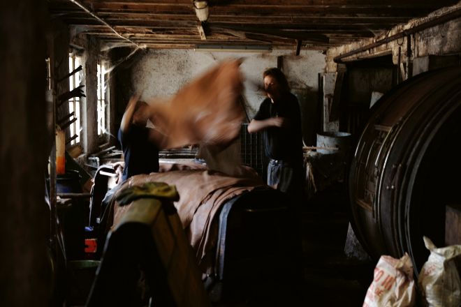 Hace un año Oris se puso en contacto con ellas para que les hicieran unas correas de esta piel que tiene la peculiaridad de que se mantienen las imperfecciones generadas durante la vida del animal. Estas pieles no se tratan con químicos ni con fertilizantes. Cervo Volante trabaja con dos curtidurías de Suiza, donde se utilizan procesos de curtido 100% vegetal.