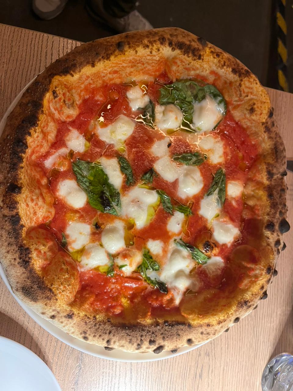 En esta oportunidad probamos dos de sus pizzas insignia del menú: la Margherita Búfala, con pomodoro pelati, mozzarella de búfala, aceite de oliva extra virgen y albahaca fresca; y La Mia Bologna, una propuesta más contemporánea con fior di latte, mortadella de trufa, pesto, stracciatella y pistachos troceados.