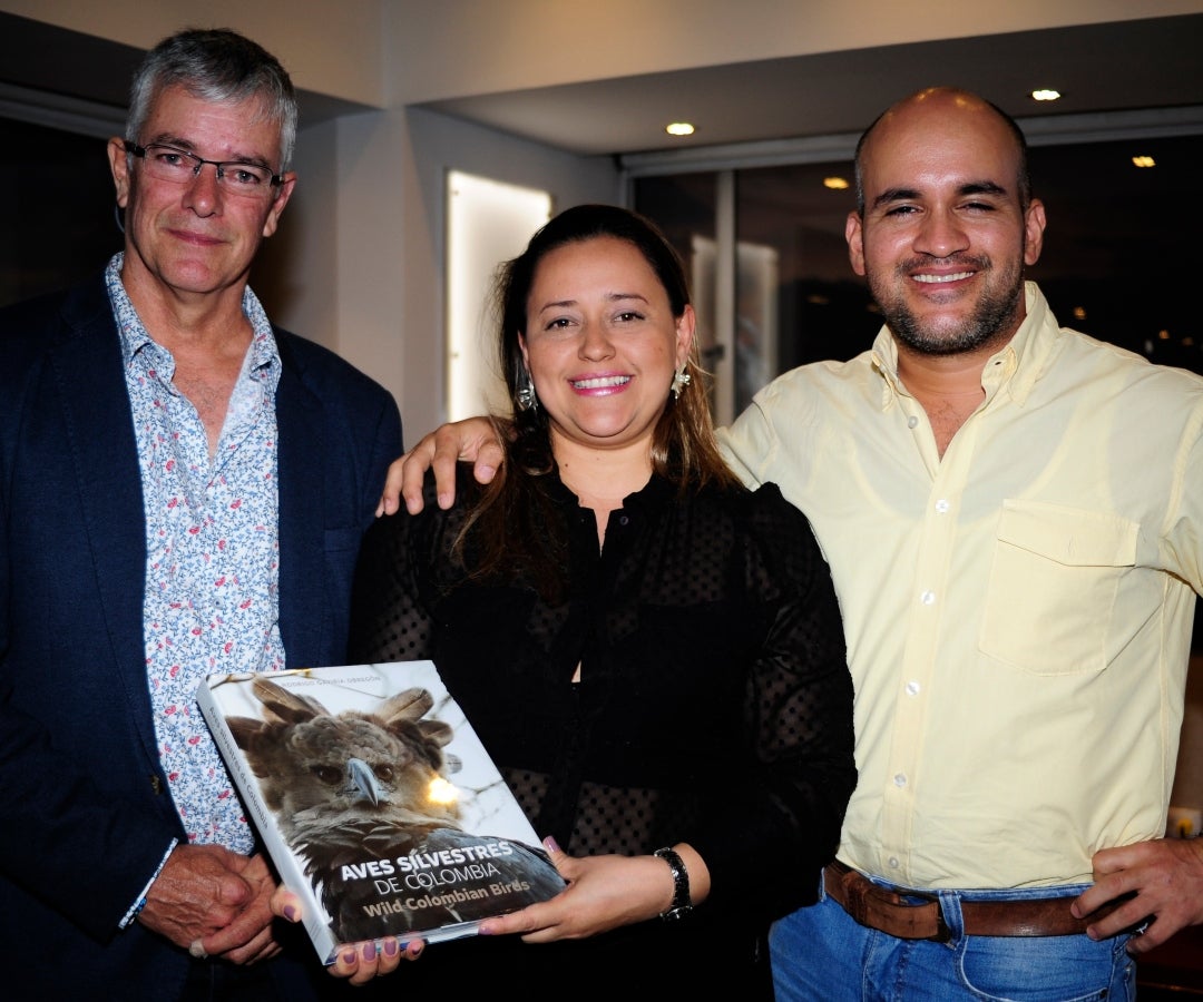 Rodrigo Gaviria Obregón, autor del libro Aves Silvestres de Colombia; Natalia Hincapié, gerente Birds Colombia, y Andrés Ríos, representante Vortex Colombia.