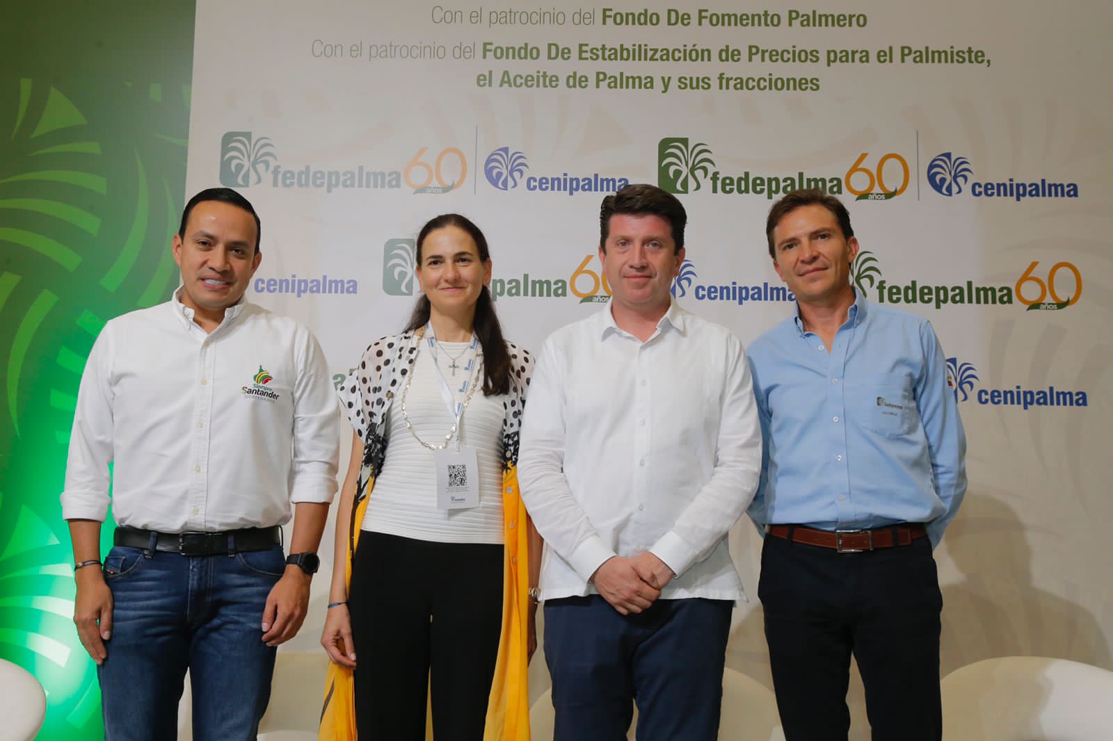Mauricio Aguilar Hurta, gobernador de Santander; Catalina Restrepo Rada, presidente de la Junta Directiva de Fedepalma; Diego Andrés Molano, ministro de defensa; Nicolás Pérez Marulanda, presidente ejecutivo de Fedepalma.