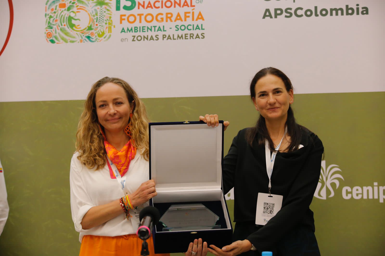 Emanuela Borja Birschel; ganadora premio mujer palmera directiva; Catalina Restrepo Rada, presidente de la Junta Directiva de Fedepalma.