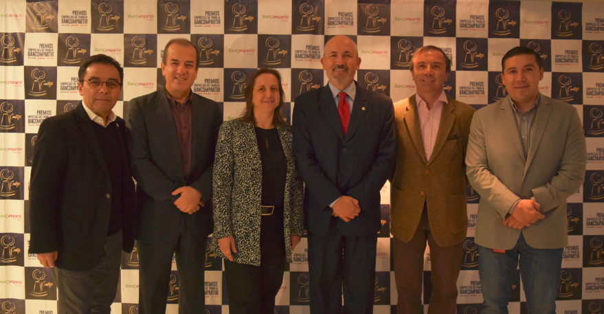 Mario Herrera, VP Operaciones y Tecnología; Carlos Viteri, consultor ext.; María Fernanda Rojas, VP financiera; Gregorio Mejía, pte.; Daniel Meléndez, secretario gral.; Santiago Venegas, gte. negocios regional.