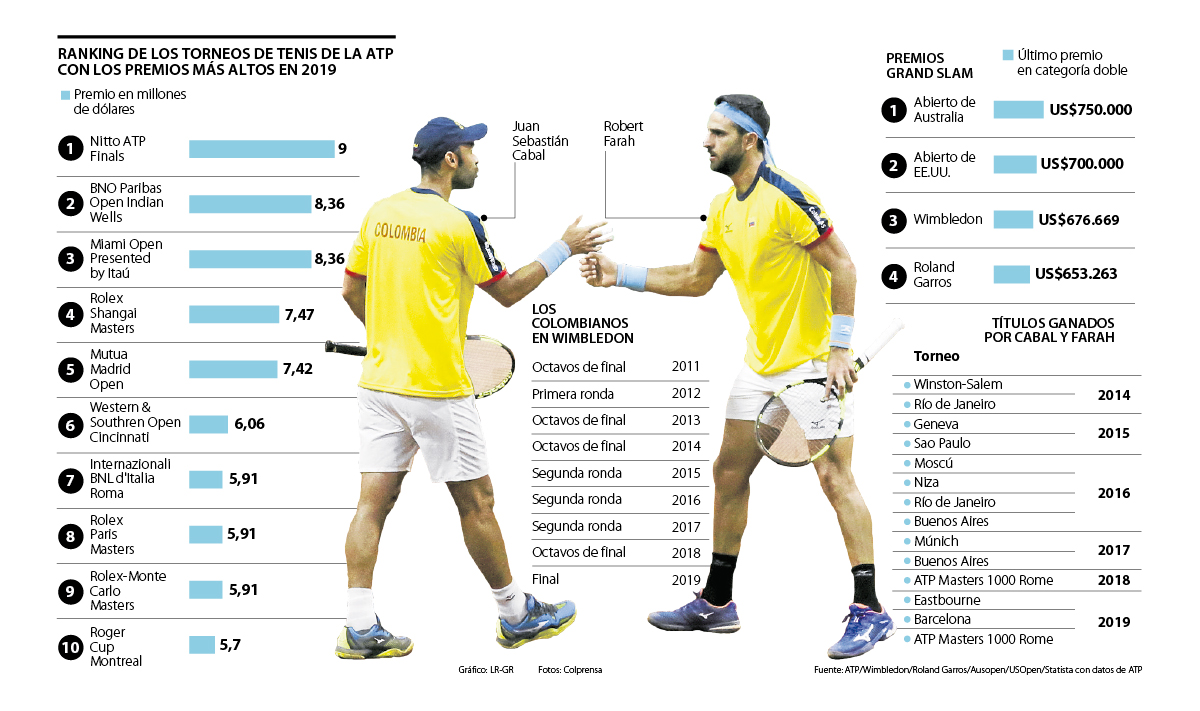 De llevarse el título hoy, esta cifra se sumaría a los ingresos obtenidos por Cabal y Farah en los tres títulos que acumulan durante este año. Hasta ayer, sin contar todavía un premio Wimbledon, ATP indicaba que cada uno de los deportistas vallecaucanos acumulaba unos ingresos de US$461.600 por estos reconocimientos. Además, durante toda su carrera deportiva, jugando en conjunto, han acumulado US$2,78 millones según la misma fuente.
