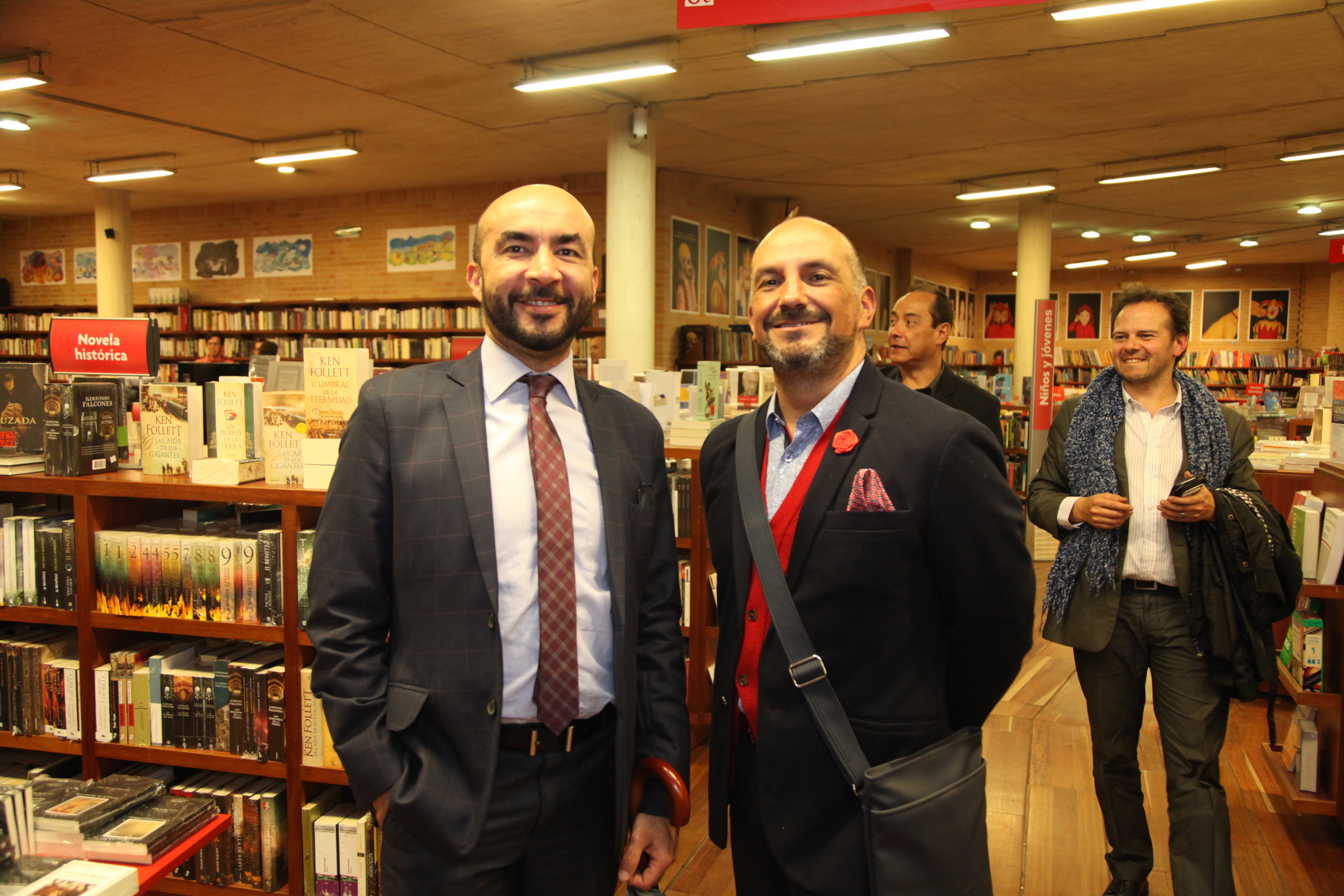 Entre los asistentes al evento que se realizó en las instalaciones de la Librería FCE estaban Carlos Corredor, galerista de arte; y Sebastián Trujillo.