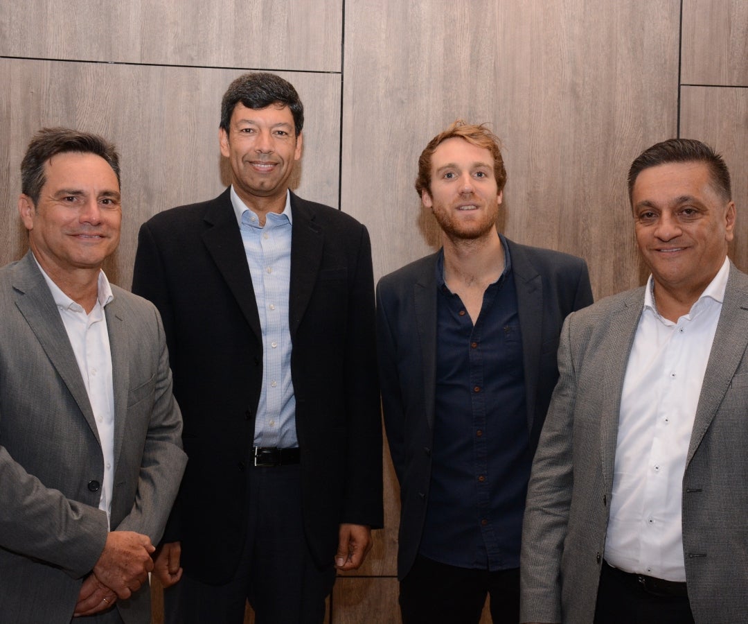 Oliverio Enrique García Basurto, presidente Andemos; Javier Suárez, presidente de Seguros Bolívar; Jake Hewlett, Google head of industry Automotive Colombia; y Carlos Tobón Velásquez, gerente línea de negocio movilidad de Seguros Bolívar.