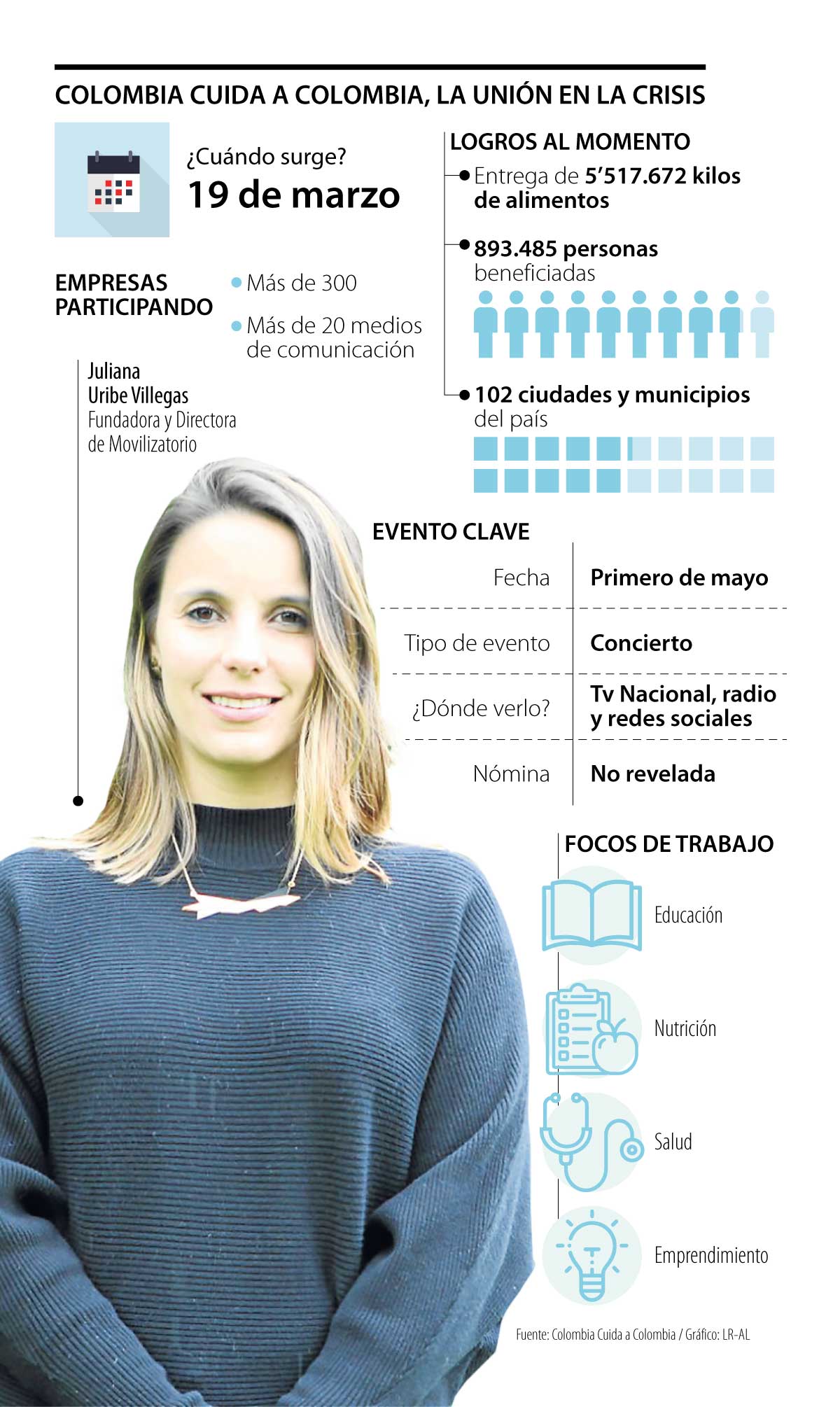 En el marco de este proyecto ya se han entregado 5,5 millones de kilos de alimentos con los que se ha beneficiando a 893.485 personas en condiciones de vulnerabilidad en más de 102 ciudades y municipios del país. LR habló con Juliana Uribe Villegas, fundadora y directora de Movilizatorio, una de las empresas líderes de la campaña sobre cómo se integrará un país en un concierto con el que se busca también aumentar la solidaridad.