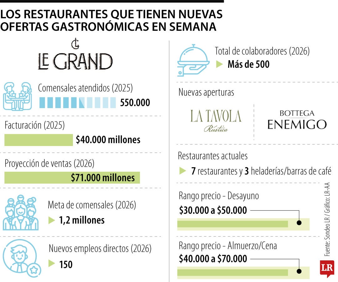 En un contexto económico marcado por incrementos impositivos y ajustes salariales, el Grupo Le Grand reafirma su apuesta por el crecimiento sostenido en el sector gastronómico colombiano. La compañía cerró el 2025 consolidando su liderazgo en la capital , tras atender a más de 550.000 comensales y facturar $40.000 millones.