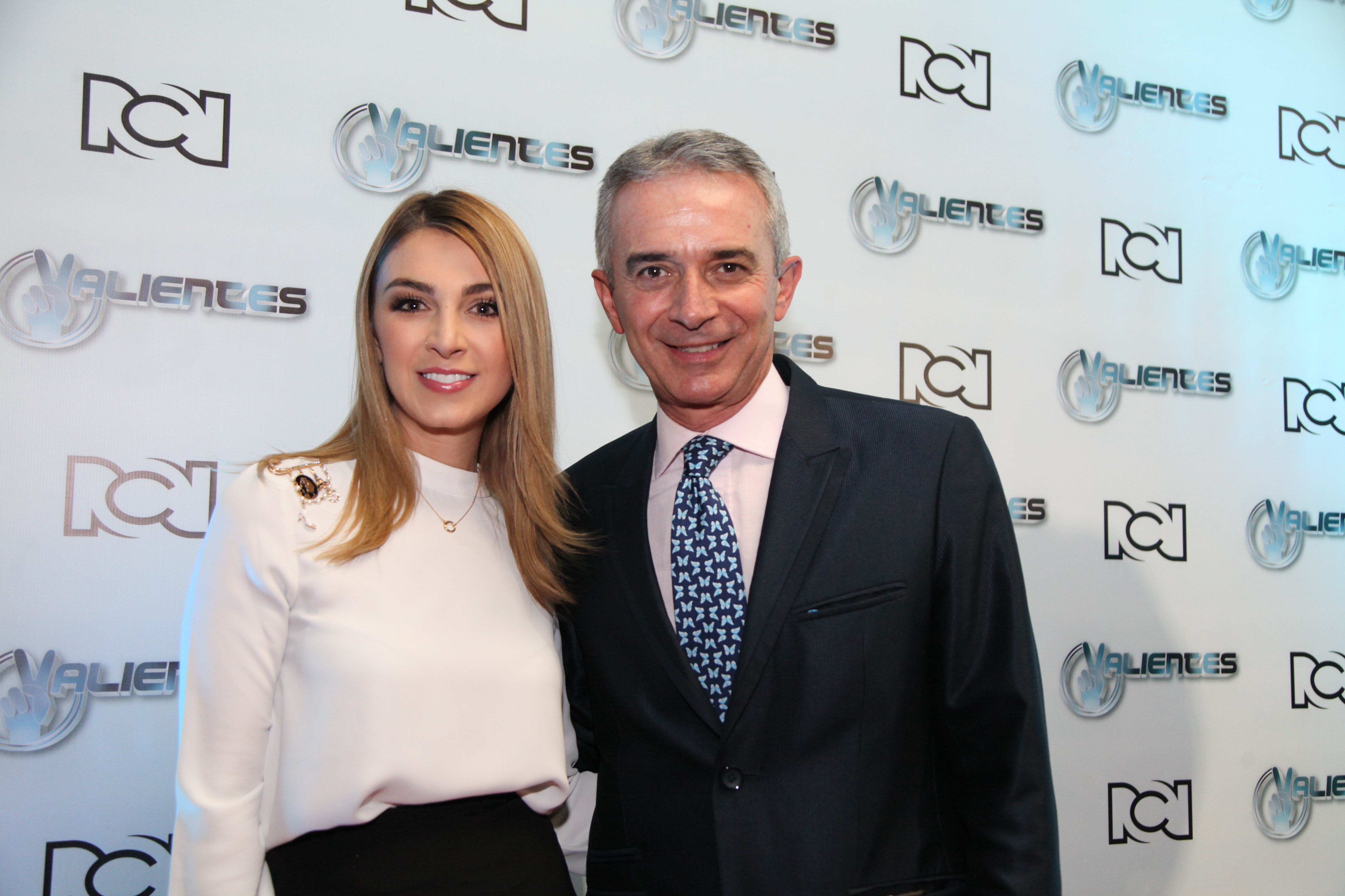 Maritza Aristizábal en compañía de Juan Eduardo Jaramillo, presentadores y periodistas en Noticias RCN durante la ceremonia de premiación que organizó el canal.