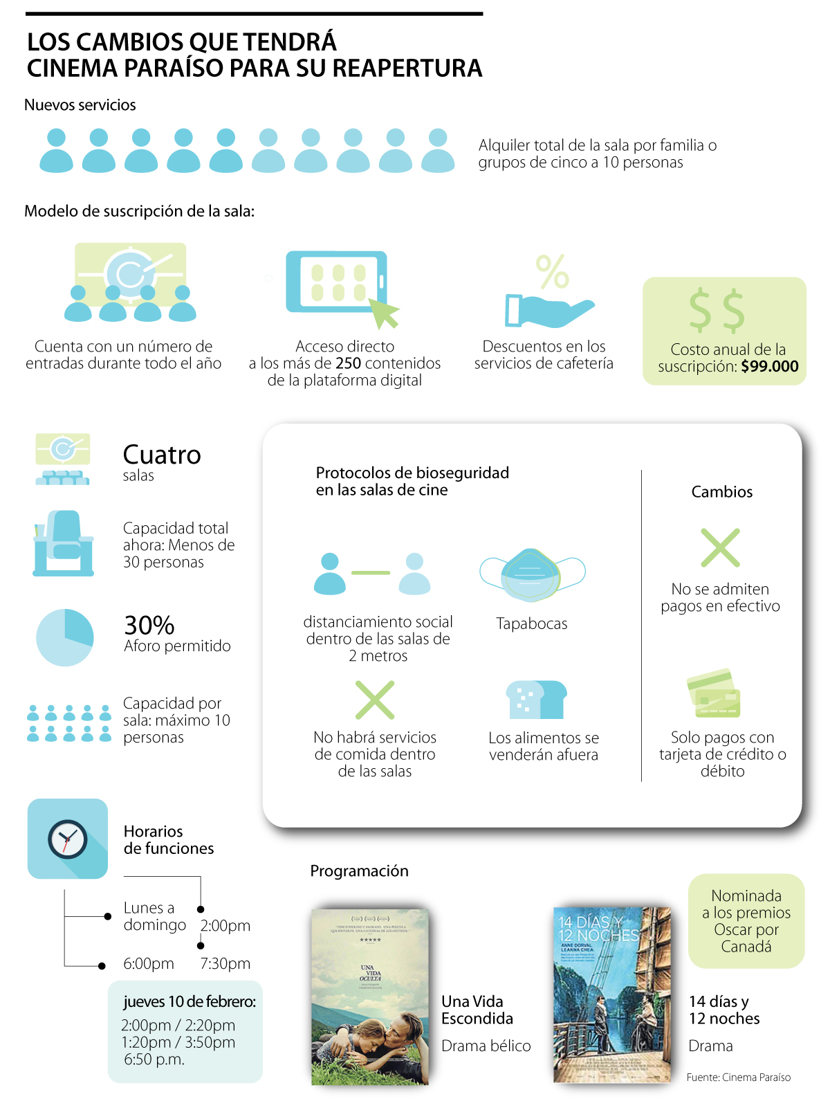 Con esta nueva apertura, luego de más de 11 meses de inactividad, Cinema Paraíso recibirá en sus salas a poco más de 30% de su aforo total.