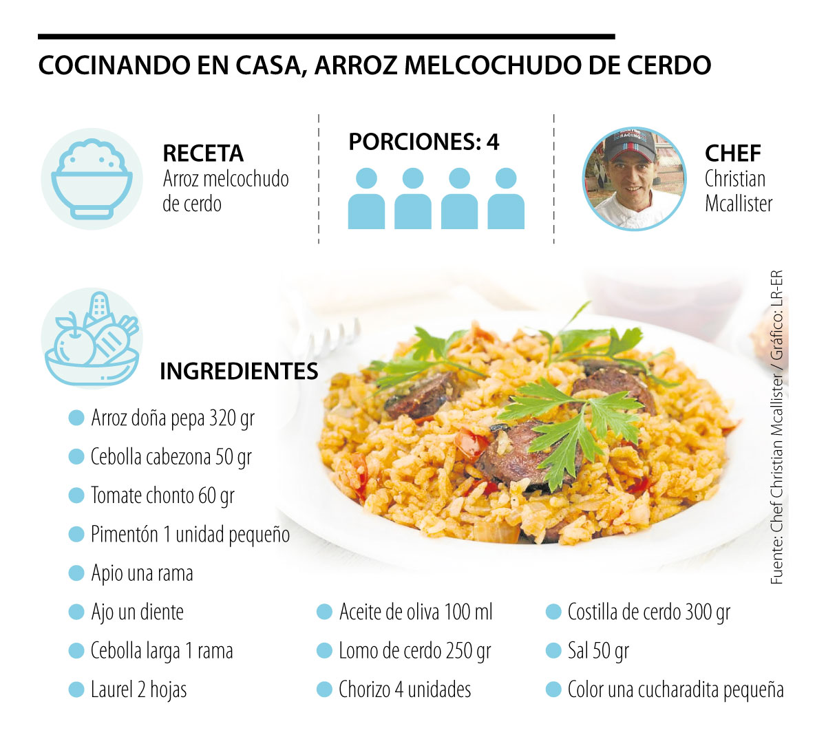 El chef Christian Mcallister, líder de la cocina de Chichería Demente, compartió su receta de arroz melcochudo de cerdo, un plato que se considera ideal para disfrutar en familia no solo en la mesa, sino también en la cocina con su preparación. Esta receta es para cuatro porciones individuales.