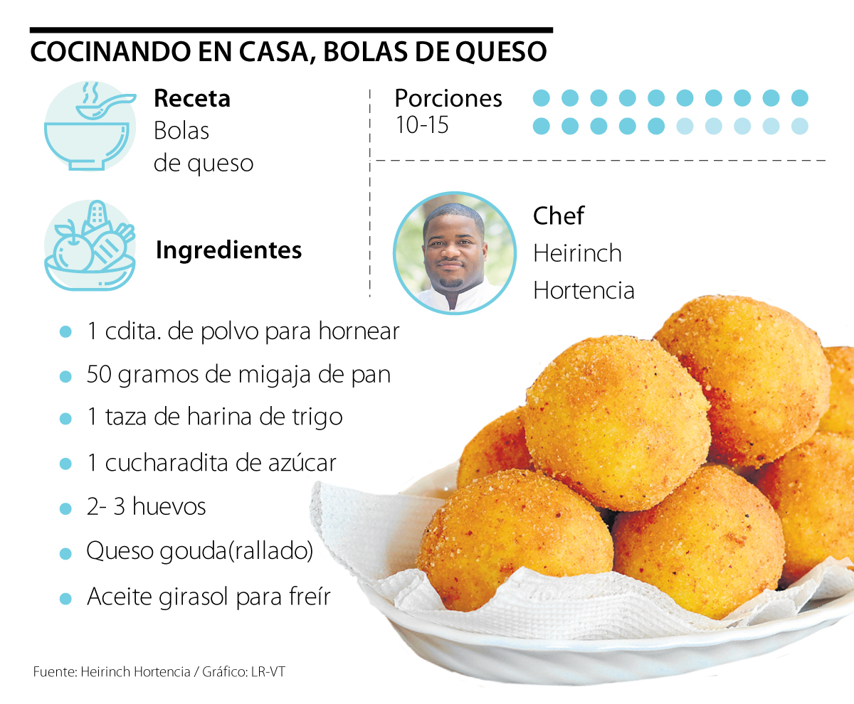 La gastronomía de Curazao es la mezcla de culturas de diferentes partes del mundo como holandesa, asiática, africana, española y, por supuesto, caribeña debido a su ubicación estratégica. El sabor de las comidas de esta isla lo conoce muy bien el chef Heirinch Hortencia del Hotel Santa Barbara Beach & Golf Resort, quien compartió con LR su receta de bolitas de queso. La preparación es para hacer de 10 a 15 porciones para compartir en familia que se pueden acompañar con otros tipos de comidas.