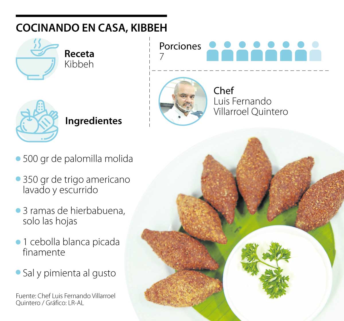 El chef Luis Fernando Villarroel, quien hoy es la cabeza del restaurante del Hotel Ermita Cartagena by Marriott es especialista en platos y sabores tradicionales de medio oriente y compartió con LR la receta de kibbeh; un plato tradicional libanés que en algunas partes del país, como en la costa, se come mucho por tradición.
