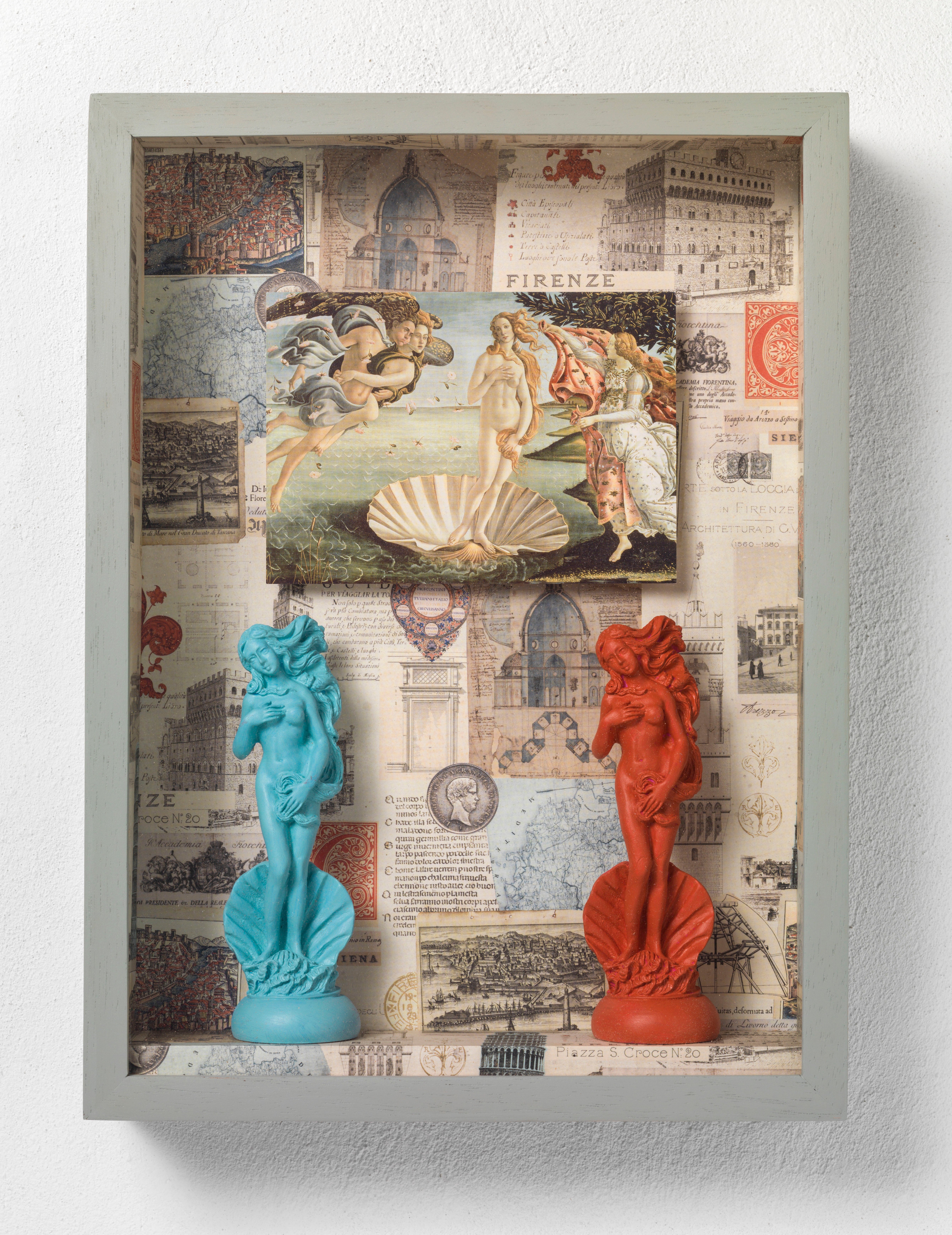 Colecciones es una muestra de arte de Elsa Zambrano inspirada en las postales, figuras y reproducciones de las obras de arte más famosas del mundo que iba guardando y recogiendo durante sus viajes.