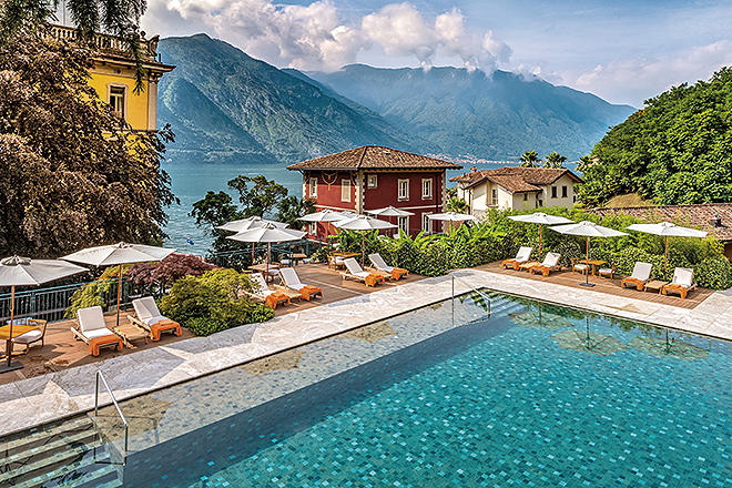 Casi en la frontera entre Italia y Suiza, este hotel emblemático en el Lago Como, el Grand Hotel Tremezzo deslumbra por su elegancia, su estilo “art nouveau” y sus tres piscinas. (Water on The Water), un oasis de color azul intenso flotando en las aguas del lago; la tranquila Piscina de las Flores, y Pool cubierta.