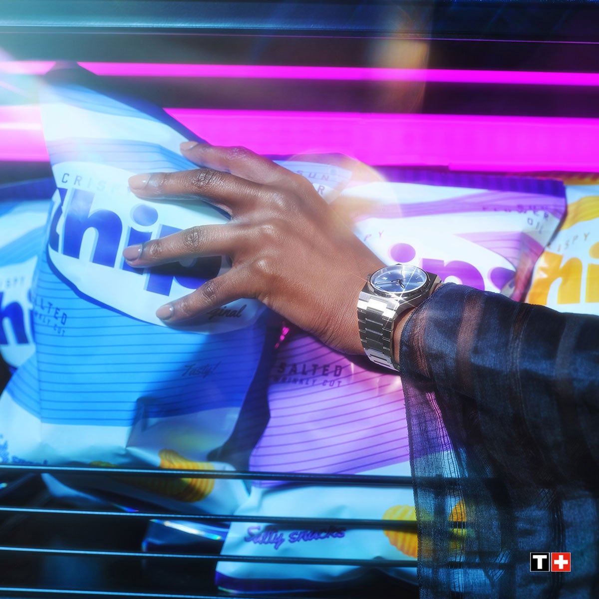 Los inconfundibles acordes de una banda sonora pulp al más puro estilo estadounidense, un primer plano de un brillo de labios, montones de snacks para conducir hasta el amanecer y cinco relojes PRX, cada uno con la esfera de un color. Nada por lo que preocuparse. ¿Y cómo se llama la gasolinera? Las letras PRX brillan sin inhibiciones en un neón de color rosa.
