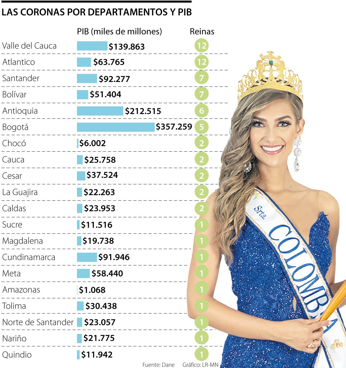 Las regiones que más reinas tienen aportan 62% al PIB en Colombia