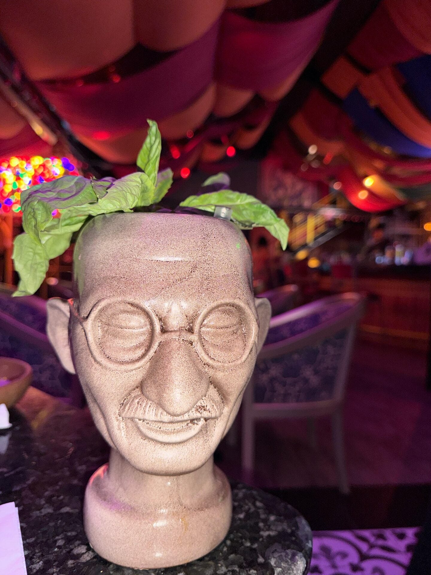 Además de shows en vivo y música originaria de India, podrá ver a los bartenders preparar cada uno de los cocteles que tienen en el menú. De hecho, para comenzar, puede optar por una de estas bebidas, que exaltan lo mejor de India, desde su contenido con notas ahumadas y cítricas, hasta el recipiente en donde las sirven, como vasos con el rostro de Mahatma Gandhi.